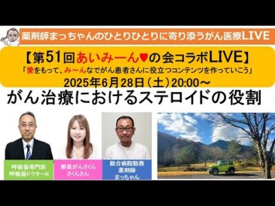 卵巣がんサバイバーさくらさん、呼吸器専門医呼吸器ドクターN、総合病院勤務薬剤師まっちゃんのコラボライブです。